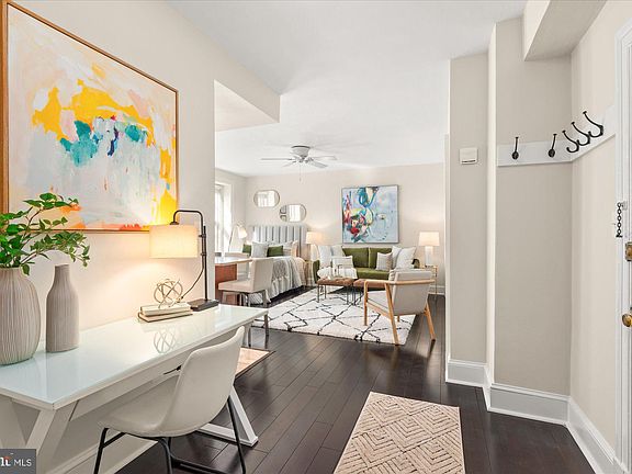Under contract with contingencies: may be shown for backups. AS SEEN IN URBAN TURF'S "BEST NEW LISTINGS OF THE WEEK"! You've never seen a studio like this! Elevated first floor, 9' ceilings, Espresso wood floors, gourmet kitchen w/ island and high-end SS appliances including Liebherr refrigerator, Sharp microwave drawer; Jerusalem limestone countertops & elegant cabinetry. Custom closets provide excellent storage. Classically handsome renovated bathroom w/ frameless glass shower, marble tile floors, subway tile walls. High-end Midea window unit. Freshly-painted and move-in ready! Assigned extra storage & pet-friendly building. 7 pkg spaces shared by owners on first-come, first-served basis.