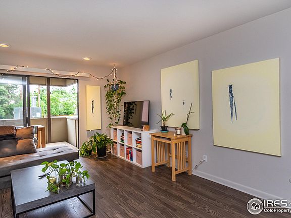 Spacious 1 bedroom condo in elevator building with no stairs. Convenient Central Boulder location walking distance to Pearl St, 29th St, CU, transportation, parks and the Boulder Creek Path. Open floor plan featuring laminate floors, kitchen w/ stainless appliances, updated cabinets & granite counters, remodeled bathroom with cool barn doors and huge covered balcony w/ storage closet. Private carport parking. HOA amenities include pool, hot tub, saunas, gym, lounge, rec room and outdoor BBQ area. Recent building updates include renovated laundry & trash rooms, elevators and updated common areas. Unit also has additional storage closet on 1st floor of building.