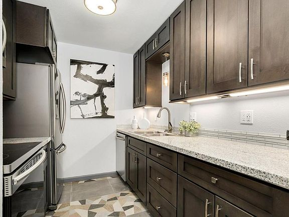 Welcome home to this stunning mid-century modern remodel with an open floor plan, quiet convenient location with high-end features. Entire home has been renovated from top to bottom and is altogether turn-key. Enjoy a modern open concept layout with beautiful tile floors, wood burning fireplace and abundant natural light that is perfect for entertaining. Stylish kitchen features gorgeous granite countertops, tile backsplash, espresso cabinets, and stainless steel appliances. Both bedrooms are amply sized and the master bedroom boasts a huge walk-in closet and gorgeous spa-inspired bathroom featuring quartz countertops, tub/shower with custom tile surround. The equally stunning guest bath boasts hexagon penny tile, glass tile and vessel sink. Located within walking and biking distance Pearl Street, restaurants and coffee shops and more. Amenities include: secured building, covered parking, pool/hot tub, fitness room, library, elevator, game rooms and shared outdoor space for bbq!