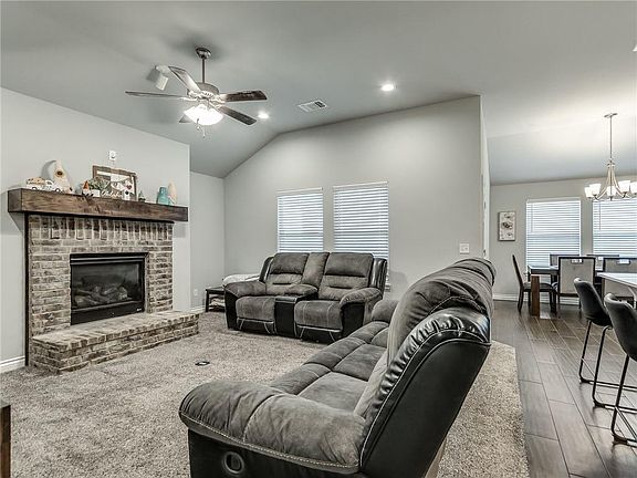 PRICED TO SELL! UNDER MARKET VALUE! Built in 2020, this "like new" home has it all! 3 large bedrooms - 2 with walk in closets, an open concept floorplan in the living room/kitchen/dining area, a split plan with secondary bedrooms on one side and the master on the opposite side of home, and a large backyard with a nice size covered patio to watch the sun as it sets (you have a great view being at the top of the addition)! The Kitchen features beautiful quartz countertops, wood look tile, high ceilings, stainless appliances, gas range, an island with seating on one side, and a pantry. The living room features a gas fireplace, high ceilings, and ceiling fan. All windows have 2in faux wood blinds, the back patio door has blinds built in, and the backyard is fenced around entire perimeter and a smaller area is fenced off for pets/kids to play! A list of upgrades is attached for buyers to view. Don't miss out~ Schedule your private showing today!