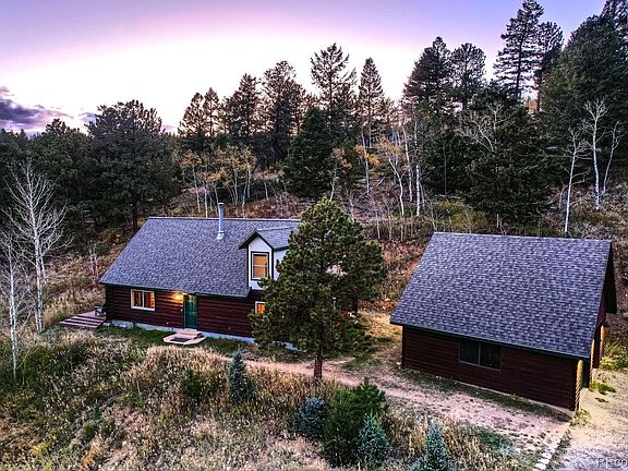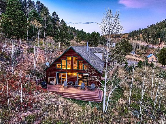 Your turn-key home is waiting! Charming and rustic log home offering mountain living with views which include Mt. Blue Sky, Echo Mtn Ski Area and the valley below. This 2 bedroom + loft / 2.5 bath log home is private yet only 10 minutes to Black Hawk and Central City; 30 minutes to Nederland and Eldora Ski Area; 20 minutes to I-70 for points east and west. Located on 2.01 acres you will appreciate the detached oversized 2 car garage offering workspace and storage. The house has multiple heating sources: two rennai heaters, a water boiler system for baseboard heaters and a wood stove. The loft can be utilized for extra sleeping accomodations or setting up a home office. Both bedrooms offer private bathrooms and the main floor has a soaking tub included in the 5 piece primary bathroom. This property has been a successful vacation rental and is being sold furnished (the furnishings are not included in the price of the property).