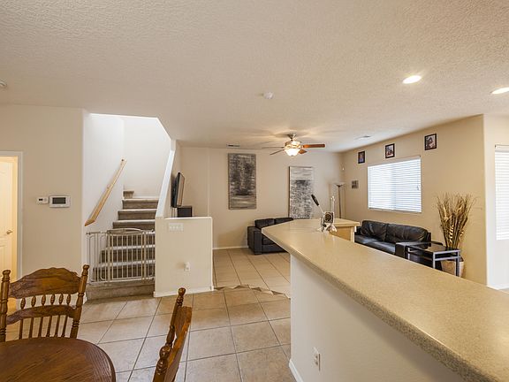 Lovely, super clean home in the desirable Cabezon neighborhood! The open main living area includes a powder room and features 18'' tile flooring throughout with inlaid tile bordering the family room. Large master suite offers tons of room and a balcony where you can watch the sun rise with your morning coffee. Master bath features double sinks, a walk-in closet and a separate room for the shower & toilet. Large open kitchen offers a breakfast bar, full tile back splash, a pantry and tons of light. Spacious back yard includes both covered and open patio areas for year-round enjoyment. The coveted Cabezon community enjoys highly rated schools and offers a park, recreation center and pool, and is very close to Rust Medical Center, shopping and restaurants. A terrific home in a great location!