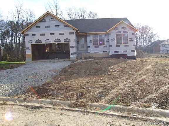 THE FINCH with a Walkout basement. Pictures are from a home that is similar to this. Looking for a new home, built with care and quality, then look no further. This home features an expansive floor plan an a walkout basement. You enter your home to a beautifully wood foyer. The Great Room features 10' ceilings with large walls. Beautiful doors lead out to the Deck for entertaining, grilling, or enjoying the evening. Enjoy cooking and dining in your open Kitchen furnished with beautifully crafted cabinets, open counter space with a breakfast bar. The Master Suite is perfect for any layout. The Master Bath features a two sink vanity, a separate shower. Don't forget the huge walk-in closet for even the most extensive wardrobes. Basement offers a family room. First floor laundry & a 2 car garage. Sq. Ft. room sz approx. Owner is a licensed agent in the State of Indiana. Home features and amenities specified on the MLS Data Sheet are subject to change prior to completion.\n\nInformation Deemed Reliable But Not Guaranteed. Information provided by the Southern Indiana REALTORS® Association, Inc. © 2010 SIRA Multiple Listing Service. All rights reserved. Brokered And Advertised By: RE/MAX FIRST Listing Agent: Billie Olson