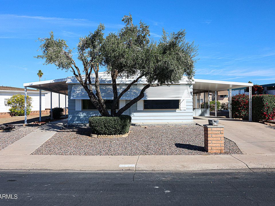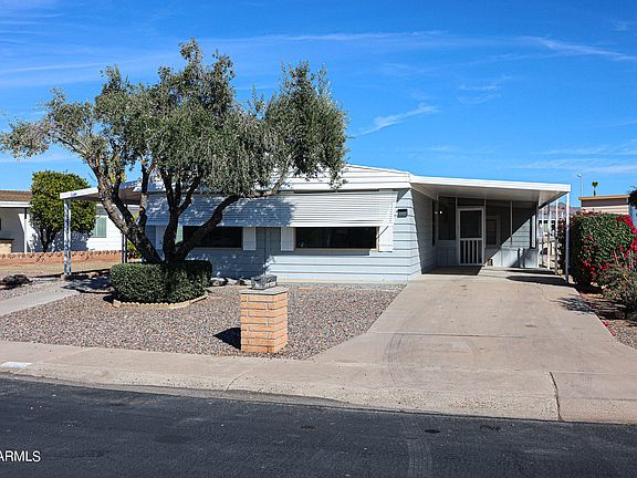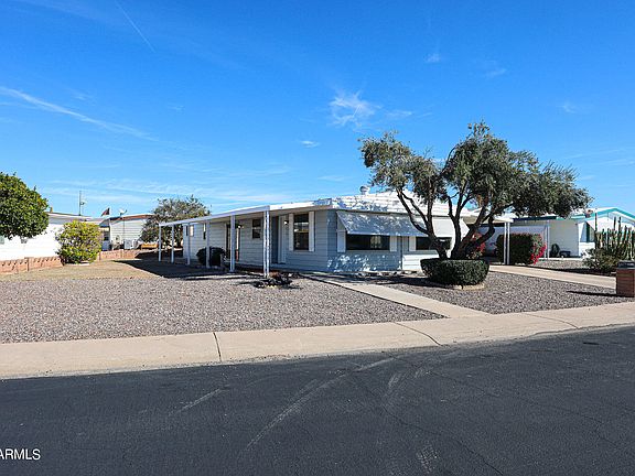 Come see this beautifully remodeled mobile home in the desirable community of Apache Wells! Home has all new wood laminate flooring throughout! New interior and exterior paint! Kitchen has recently been updated with new granite countertops and stainless steel appliances! Very open floor plan! Both bathrooms are spacious and closets are large! New washer/dryer located inside! Home has an Arizona room and large storage area to one side! Lot is huge! Apache Wells has many amenities to enjoy including community pool & spa, pickleball courts, golf course, workout facility and more! HOA is very low! Don't wait - this home will not last long!
