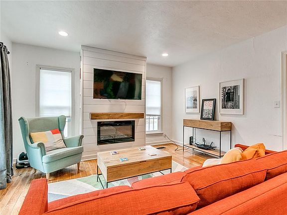 Adorable home in an amazing location! Home sits on a corner lot with a oversized front patio. Home features 3 bedrooms and 2 full baths with original wood floors throughout. The home has new windows and a newly poured concrete driveway. The living area has has been updated with a modern electric fireplace. The kitchen has stainless steel appliances, quartz counter tops and subway tile backsplash. All appliances to stay with the home including the washer and dryer so need to buy any for your new home! Secondary bedrooms are on main level with a hall bath. Upstairs has a large master suite with updated full bath. Downstairs you will find a second living area with backyard access and large covered patio just waiting for someone to put their personal touches on it t create a backyard oasis. Close to all of the art districts, shopping, dining and the highway. Make an appointment to see it today!