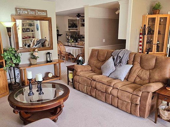 Beautifully Maintained Home with Custom Touches and Recent Updates This well-kept home features thoughtful upgrades and custom details throughout. With a new roof and fresh exterior paint, it's turnkey and ready for entertaining.Inside, enjoy vaulted ceilings, a spacious dining area, and a cozy gas fireplace. Built-in cabinetry offers great storage, and the bright kitchen includes pull-out shelving, a large island, and plenty of cabinets. All appliances are included, with a brand-new dishwasher.The layout offers a primary suite with en suite bath.The 3rd bedroom is currently being used as an office.The hallway laundry area adds convenience and storage.Relax in the private, fenced backyard, or on the cozy front porch. The low-maintenance yard features underground sprinklers and two garden sheds for extra storage.