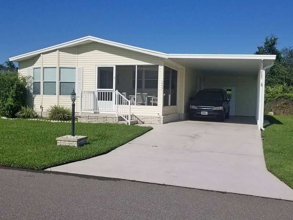 BEAUTIFULLY LOCATED.....Stunning Tower Lakes is a pet friendly, 55+ active adult community located in Lakes Wales, FL. Here you own the home and lease the land. Lot rent for this home is $ 532.41 and includes park amenities for you and your guests to enjoy...... LOCATION - LOCATION - LOCATION..... No rear neighbors...and overlooks a beautiful grass-filled boulevard. Retirement never looked so good!..... This fantastic 2-bedroom, 2-bath, furnished, 1451 sq. ft. double-wide, one-owner home offers the perfect serenity for seasonal or full-time living!..... Features include a U-Shaped Kitchen with a gorgeous view, ceramic tile flooring, plenty of counter space and a breakfast nook with 2 mini stools for a quick bite...... Open to the dining room which comes with a table & 6 chairs. Storage is no problem with the built-in hutch and the beautiful handmade stained-glass inserts in both dining room windows...... The living room is spacious, light and airy and leads into the 4-season room perfect for your morning coffee or curling up with your favorite book...... Step through the sliding doors and you can enjoy the front facing, screened lanai. Just steps away is access to the carport...... The main bedroom is privately tucked away and offers a queen bed, dresser, and 2 nightstands. The adjoining bathroom features a large vanity, walk-in shower, a full linen closet, 2 frosted windows and a skylight...... The guest bedroom is equipped with 2 single beds, a dresser & nightstand. Just perfect for guests. ..... Across the hall is the guest bathroom and has a shower/tub combo...... There is an extra hutch in the hallway and just across is entrance to a mudroom that exits to the carport...... This is also a dedicated office space with a built-in desk and a closet w/shelves. Perfect for a home office!..... For storage, there is an attached storage shed that also houses the laundry room. Washer/Dryer will remain...... To make this yours - Call to schedule a private tour!..... You'll be glad you did.