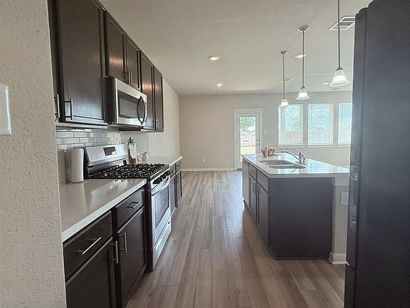 Available for immediate move in, Minimum credit score 625, good rental history, credit and background check required. Deposit and rent $1995. Built in 2021, this beautifully maintained two-story duplex offers the perfect blend of modern design, comfort, and convenience in the sought-after Homestead community. Featuring 3 spacious bedrooms, 2.5 bathrooms, and an attached 2-car garage, this home is designed for easy living with thoughtful details throughout. Step inside to an open-concept main floor with abundant natural light and stylish finishes. The kitchen is a chef's delight with granite countertops, dark cabinetry, stainless steel appliances including refrigerator, microwave, washer, and dryer and a large center island that flows seamlessly into the dining area and expansive great room, perfect for gatherings and entertaining. Upstairs, you'll find all three bedrooms and a versatile loft space ideal for a home office, playroom, or reading nook. The spacious primary suite features dual vanities, a walk-in shower, and a generous walk-in closet. Washer and dryer included. Additional highlights include luxury vinyl flooring on the main level, plush carpet in the upstairs bedrooms, and a xeriscaped front yard with well-maintained landscaping for easy care. Enjoy a private backyard retreat and a peaceful neighborhood setting with excellent schools, parks, HEB, shopping, dining, and convenient access to major highways just minutes away. Don't miss this opportunity to make this gorgeous, move-in-ready home yours! Tenant pays all utilities. Pet deposit $300 refundable, $150 non-refundable per per pet. Lease ends May 31 or June 30 of 2026.