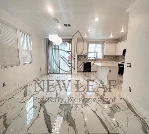 The open-concept main level flows seamlessly from a gourmet kitchen with sleek appliances, an elegant backsplash, and generous counter space into bright dining and living areas perfect for entertaining or relaxing evenings. Throughout the home you'll find tile flooring, while the bathrooms feature luxurious marble flooring. Custom cabinetry has been added throughout the home, including the living room, hallways, media center under the TV, the walk-in closet in the primary suite, and in every bathroom for extra storage of toiletries and essentials. The primary bedroom also showcases a custom vanity, while the spa-inspired ensuite bath is elevated by premium luxury light fixtures and elegant finishes. A private balcony adds an inviting outdoor retreat.