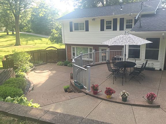 This beautiful McCutchanville home has wonderful curb appeal and a gorgeous setting. It has a beautiful view of the stocked lake from the front porch and the picture window in the formal living room. Home owner has full lake privileges. The living room has built in bookshelves, a wood burning fireplace and a large picture window. Just off of the living room is the formal dining room with new sliding doors to one of the beautiful patios. The kitchen has stainless steel appliances including a gormet gas stove with an electric convection oven and warming oven. Upstairs are three generous sized bedrooms with lots of closet space. Two of the bedrooms have hardwood floors. The master bedroom has an attached full bathroom. There is also a second large bathroom to serve the other two bedrooms. The walk out basement has a large family room with a view of the second patio. There is also the large 3rd bathroom and 4th bedroom in the basement along with a nice sized laundry room. The very private backyard has two gorgeous patios with landscaping and 2 storage sheds. The 2 car garage has a large workshop area attached.