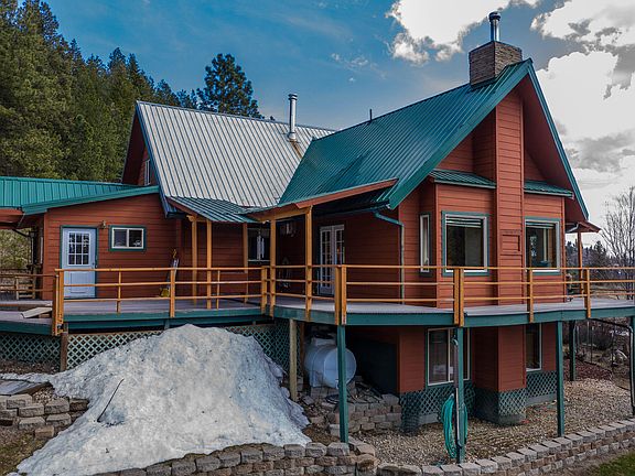 Wow! This one has it all! 40 acres, 1/2 timber, 1/2 meadow with Southern exposure backed up to State Lands without a neighbor in sight!! State to the North & Large timber Company to the South; this property offers complete privacy & solitude. Nothing but wildlife & breathtaking views out your numerous windows & wrap around covered deck. Sit & enjoy the day away! The expansive home offers 3 bdrms; 2 full bthrms plus 2 additional 1/2 baths; beautiful living room w fireplace and vaulted ceilings, The main level offers 1bdrm/1bth, kitchen, living rm, laundry, dining rm & entry. Upstairs you will fine a private suite including walk-in closet & full bth. Down you will find an additional suite, living rm, additional den/study and 2 half baths. 30x40 shop, 3 bay carport, fended garden & greenhouse