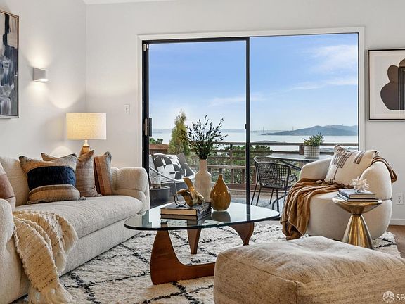 At the tiptop of the El Cerrito Hills in a manicured enclave, this home welcomes you through mid-century double doors into a large entry where you can first spy the stupendous view available from every major room in the house. On top of the world-or at least the Bay Area-you can see a 180 degree panorama of dramatically changing sky and water. Directly in front of the entry is the living room & adjacent dining room, which open to a wide deck which offers access to the garden overlooking the golf course. To the right of the dining room, the kitchen features new appliances+induction range, new counters & magnificent views. Kitchen dining area w/yard access, family room w/fireplace, and laundry room complete this level. Open stair rises from the living room to the 2nd level, which features a huge main suite with three+ closets, its own view deck, and bath with new floors and double sink & walk-in shower. The upper floor is completed by two additional large bedrooms and a refreshed hall bath with new floors and vanity. The home also features direct entry to the 2 car garage & ample closets. Living in Country Club Vista is, as its name suggests, convenient to the Berkeley Country Club. Also close by are shopping at El Cerrito Plaza, Solano Avenue shopping, BART and the I-80.