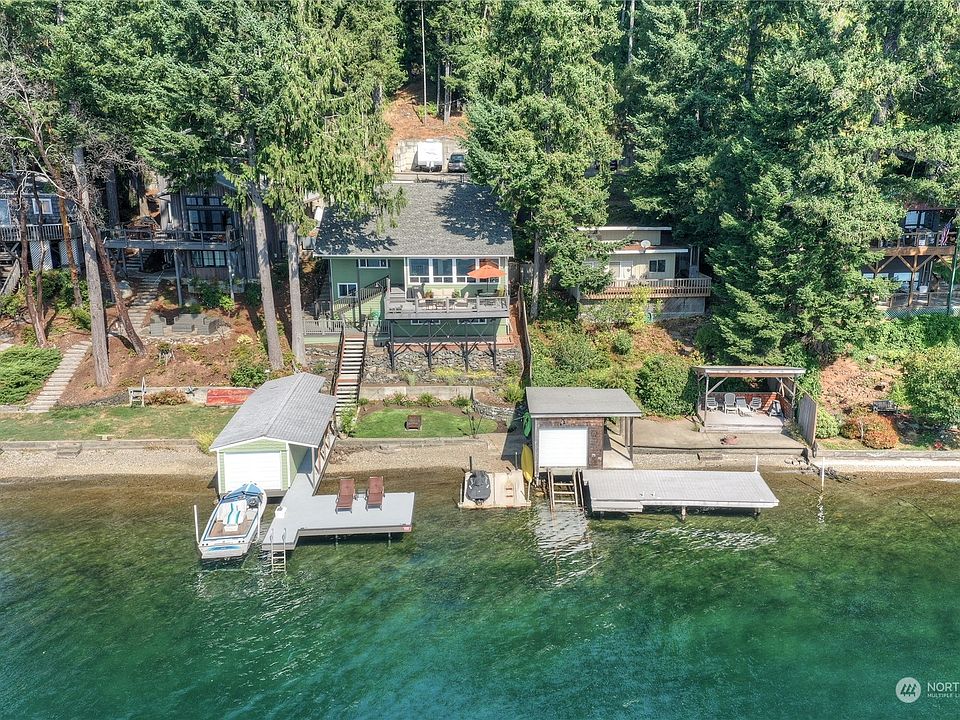 Spacious & charming Summit Lake home! Just outside of Olympia & in the Capitol Foothills lies the clear waters of Summit Lake. This home has been meticulously kept for & undergone too many updates to list. Awesome views of the lake in this open floor plan with wall of windows in the dining, living area and great views from the primary bedroom. Lower-level features den/office area and TV room. Home is just a couple steps to the gravelly beach, dock & boat house w/ deep water boat lift. This lot is unique as it offers RV parking & up to 4-5 additional cars. Deck & all of backyard are south facing for yearlong enjoyment. Quality & craft are of no shortage here, a must see to appreciate. 15 minutes to West Olympia amenities.