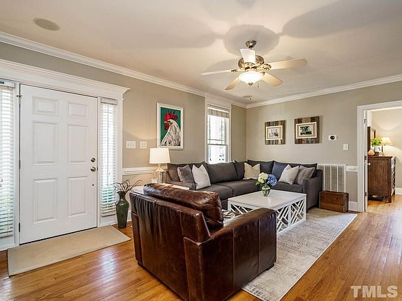 Storybook bungalow with 2 bedrooms and an office features a charming front porch and newly hardscaped backyard with fire pit. The updated kitchen has custom cabinetry and shelving, a butcher block bar and wine cooler. Maintaining its original charm with beautiful moldings, hardwoods and built-ins, it has a large master suite with two closets and an en-suite bath with dual sinks. Walking distance to Five Points' bars and restaurants and minutes away from Cameron Village, North Hills, and Lynwood Brewing.