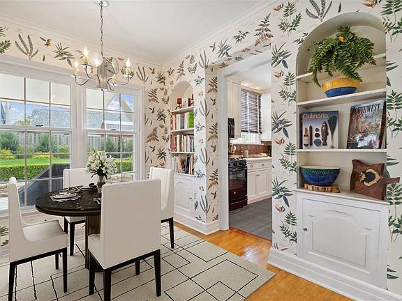 Rare, quintessential McKay-built stunner describes this meticulously maintained home that is in like-new condition thanks to the current homeowners who have been great stewards of this vintage property for the past 38 years. One of McKay's most unique and well-appointed homes, this entire property feels quite special. Upon approaching the home outside, the curb appeal is striking. First, the unique design of the gambrel roof; next, the rich crimson color that gives the house so much personality; then, the carefully sculpted and well-planned perennial landscape gardens that don't present too much of a maintenance challenge for the positive, artful impact they lend to the property. The inside feels even more special with robust paneled archways between rooms; entablature-style crown molding; oversized windows and trim; 9’ ceilings; an immense amount of built-ins so beloved from this art deco architectural era; custom, in-set kitchen cabinetry done in classic white with a tasteful and vintage appropriate bead board backsplash; a Juliet balcony off the second floor hallway that overlooks the well-manicured back yard; hardwood floors that look new despite never having been refinished in the 38 years the current homeowners have enjoyed living here. To continue the theme of rare finds, this home has a bath on every floor and an en suite bath off of every bedroom, each with museum quality original features. The primary bedroom features multiple closets, including a walk-in closet as well as an en suite bath with not only a soaking bathtub, but a walk-in shower. The lower level has a poured, modern foundation with a sump pump; ample storage; a full bath with shower; the second fireplace; wet bar; and a Murphy bed that easily pulls down from the knotty pine paneled wall to create a guest space. With this much to offer at this price, this one won’t last long! Come see this home in person while you still can! This one is even more impressive in person than in the pictures.