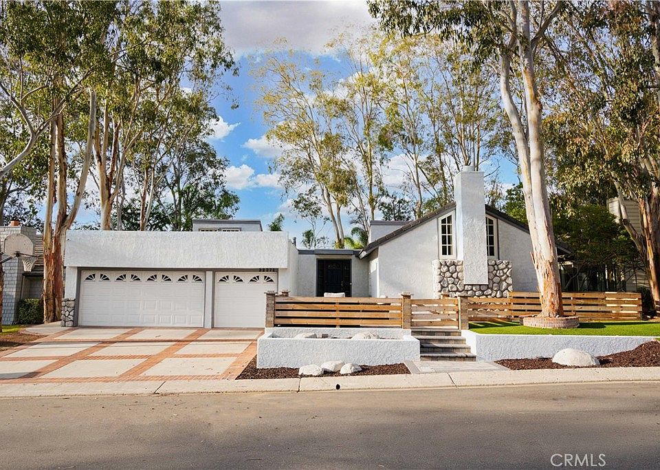 Set amongst the panoramic tree-lined pride of ownership neighborhood, this rare transitional highly desirable single story Lake Forest home makes a striking impression. Nestled in the heart of The Woods, this 3 bedroom plus office/flex space, 2 bathroom home has been transformed into a stunning beauty which encompasses Orange County lifestyle. From the moment you set eyes on the charming curb appeal and step up through through the custom inviting private front porch, your guest are greeted by the towering mature trees that is perched throughout the community. Walk into the custom foyer entry which is accented by the dramatic vaulted ceilings, which allows an abundance of natural light into the spacious living room accented by an impressive fireplace with custom moulding and built-ins. The spectacular elegant dining room completes the great room and offers spectacular views that create an inviting gathering place for comfortable living. The Chef-Inspired open kitchen features white shaker cabinetry with ample cabinetry, granite counters with full backsplash and extended breakfast bar overlooking the expansive family room with a romantic fireplace and dramatic wall of brick. Generous master suite with private slider to backyard, large secondary bedrooms, inside convenient full-size laundry & upgraded hall bathroom completes the home. Boasting newer upgrades to include custom fixtures, wood-like vinyl flooring & baseboards, interior and exterior paint, storage area in garage, newer water heater, exterior Redwood perimeter fencing & much more surpassing every home in this price range. Peacefully tucked on an interior generous sized lot, the large backyard is great for entertainment with a private deck, built-in BBQ, in-ground trampoline, dog run and low maintenance hardscape. The Lake Forest Beach and Tennis Club is a vibrant community which offers you access to Olympic size Pools, Spa, Tennis & Basketball Courts, Gym and Lake views!