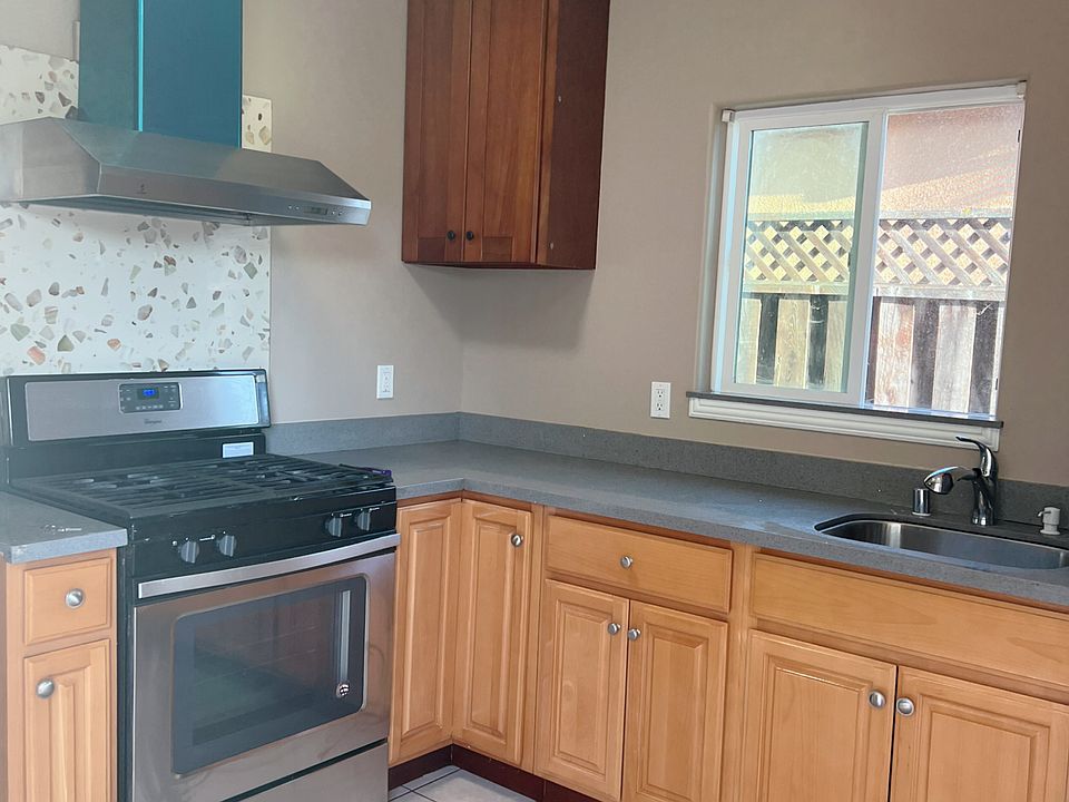 private room washer dryer , dish washer full kitchen . one parking space . owner pay for garbage . water and PGE bill are share with other .