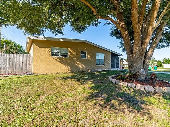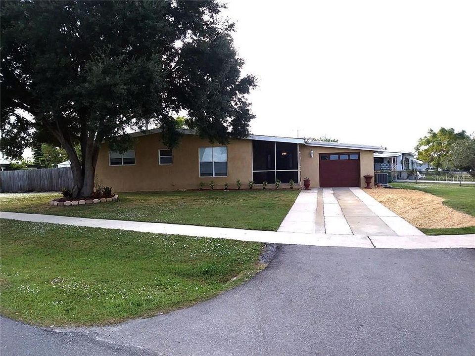 WOW! Don't miss this great investment opportunity! Corner lot home, surrounded with a privacy fence, comes with a shed, garage, and sidewalks. This furnished home has NEW flooring in the dining room, kitchen, and hallway, NEWLY completed kitchen, NEWER windows, NEWER A/C, NEW toilet and sink in the main bath, and is partially furnished. Find in the garage a working toilet and sink to add a half bath onto this one full bath home. Observe ceiling fans in every room, unique built-in shelving, and an outdoor concrete grilling area. A screened in entry and back lanai give you multiple outdoor areas to enjoy and a great breeze throughout the home. Have plenty of parking with a beautiful stone expansion off the already extended driveway. Cosmetic touches is all this home needs to shine bright again. This centrally located area is close to the interstate, schools, shopping, beaches, and more! Priced to sell, call today!