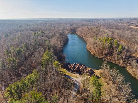 This is a rare opportunity to own a unique, one of a kind property that could be a life long dream home or investment/business (like a bed & breakfast, Airbnb, hunter's lodge or equestrian village). Built in 2007, this tremendous estate is constructed from Red Cedar logs (imported from Ontario, Canada) with a breathtaking 9,000 square feet of luxe living on 132 acres of picturesque Southern Illinois woodlands. Enjoy the diverse wildlife including deer, wild turkey, rabbit, mink, beaver or the private lake for peaceful fishing and boating. This home features 6 bedrooms and 5 1/2 baths, a heated indoor swimming pool complete with a dehumidifier, workout room, 3 car garage, three-zoned geothermal units, enormous outdoor deck and patios with breathtaking vistas overlooking the lake and separate, discrete cabin in the woods. The owner is retiring and has priced it to sell. With low taxes, this is an excellent opportunity to own a luxury retreat for home or business in a beautiful natural setting, offering tremendous value.