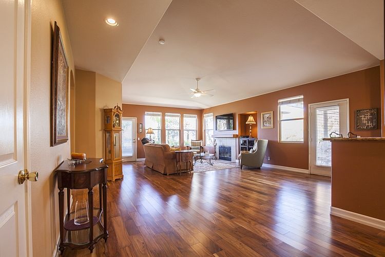 Peaceful culdesac 1 story setting with open westerly views. Home shows model perfect. Remodeled kitchen with stainless steel, dual fuel range and double ovens, upgraded engineered wood flooring,vinyl dual paned windows, fireplace, recessed can lighting...Private lot with finished 3 car garage. Hurry on this one!!