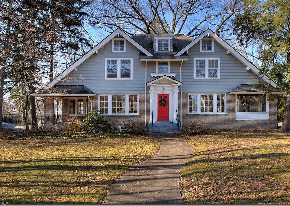 Elegant brick and frame center hall colonial with lovely architectural details. Large inviting living room spans the width of home with crown moldings and wood burning fireplace and opens through French doors to family room with wall of built-in shelves. The formal dining room, with access to a charming covered porch, offers beautiful moldings and trim. It leads to both a bright breakfast room, overlooking the side porch, and a functional butler's pantry. The kitchen has a useful mudroom and access to a back entrance porch. A gracious staircase leads to the second floor, featuring a large master bedroom suite with two walk-in closets with built-in drawers and a private bathroom with shower. Two additional bedrooms and a full bathroom, with separate tub and shower, complete the second floor. The third floor consists of two bedrooms and a full bathroom, with vintage claw foot tub and storage. The partially finished lower level has a recreation room, workshop and additional storage. This lovely home is conveniently located within walking distance to both the Coventry and Cedar-Fairmount business districts and minutes to University Circle, CASE, University Hospitals and the Cleveland Clinic.