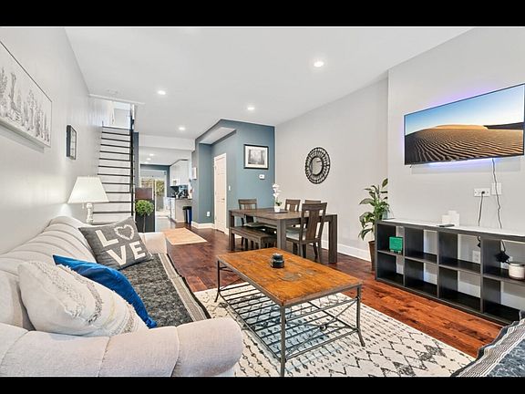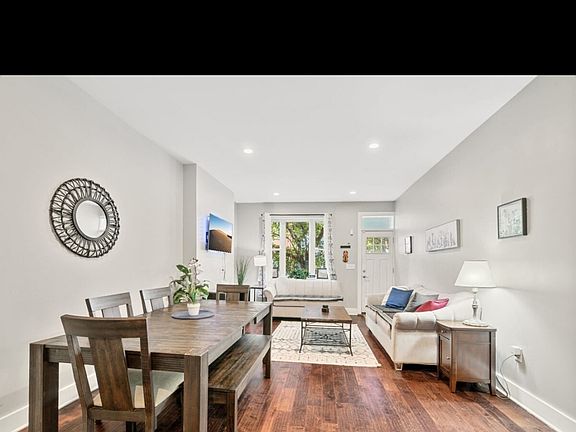 Welcome to your beautiful new home in the heart of the beautiful Point Breeze neighborhood. This 2 bedroom, 2.5 bathroom, boasts natural sunlight, high ceilings and modern finishes. Step in to this open concept living room/dining room with engineered hardwood floors and recessed LED lighting throughout. There is a powder room located on the first floor for you and your guests' convenience. The kitchen is galley style, equipped with a full stainless steel appliance package, gas range, granite countertops, and a gorgeous slate tile backsplash. Following the kitchen, you will approach the mudroom with a side-by-side washer and dryer closet. Looking out from the mudroom sliding glass doors, you will find a large backyard patio with a garden bed. This outdoor space is not easy to come by in the neighborhood, what a feature! As you walk upstairs, you will approach the hallway full bathroom and secondary bedrooms, and as you walk toward the front of the house, you will find the main suite bedroom and full bathroom. The shower is a large stall shower, with a huge tiled niche for your product needs and glass shower doors. The bathroom contains a beautiful double vanity for extra space and two occupants. The main suite bathroom has a large closet inside. The main suite bedroom has two large closets, as well. The basement is finished and has previously been used as an office space, but you can make it your own! It would also be a great work out space, or additional den Tenant responsible for water , electricity and gas.