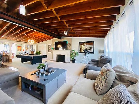 Stunning home situated in sought after quiet SE neighborhood. Upon entering, you will be struck by the open floor plan detailed finishes, and spectacular exposed knotty pine rafters that grace the living room, dining room, and kitchen area. This home tastefully merges the retro and new in an eclectic decorating style. Oak beams, polished walnut counters, and maple cabinets all merge in this incredible gourmet kitchen. Features include, under counter LED lighting, subway tile back splash, ample storage, gas stove, double wall oven, huge refrigerator, and massive island that opens up to the living room and the dining area. Living room focal point is the amazing mantel surrounding the wood burning fireplace as well as huge newer windows that let in lots of natural light. Perfect space for entertaining and hosting holiday get togethers. Bedroom wall and ceiling finishes are light colored wood common in the 50's. Built-ins in each bedroom are numerous and the closets are cedar lined. Updates are also apparent in the bathrooms. Second living space is cozy and opens onto the outside patio. Another entrance to the patio is off the kitchen. Outside yard has perfect area for a garden and flowers, and is a quaint spot to relax. Really nice 8'X12' outbuilding perfect for storage.