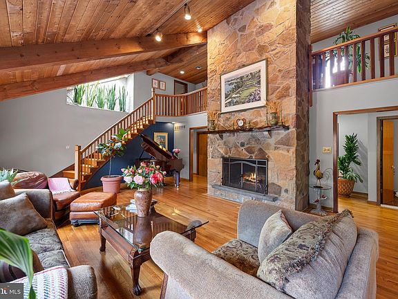 Welcome to 2228 East Deerfield Drive. Located in the heart of Rose Tree Media School District in the luxurious Springton Estates neighborhood, this stunning 5 bedroom, 3 full and 2 half bathroom stone contemporary home boasts stunning water views from every floor. Situated on a quiet tree-lined street and backing up to the Springton Reservoir, this home is a tranquil retreat just minutes from the bustling boro of Media. Approaching the home you are greeted by a stately double entrance driveway, mature trees, and a beautifully landscaped front yard that leads to the main entrance and three-car garage. Stained glass double doors lead you inside the home and into the center hall foyer with an exposed stone wall. Here two large hall closets provide plenty of space for your guests' belongings, as well as a convenient powder room. The kitchen sits off to the left, featuring an abundance of solid wood cabinetry, granite countertops, large windows, and a butler’s pantry with desk seating. The attached dining space is large enough to fit any dining table and has glass doors that lead to the wrap-around deck for easy alfresco dining. The kitchen seamlessly flows into the family room adorned with vaulted ceilings, tall picture windows, and parquet flooring. This space could easily be transitioned to a formal dining room. The two-story stone fireplace is the focal point of the living room, highlighting the sloped wooden-clad ceilings, and drawing your eyes up to the skylight and catwalk above. Sliding glass doors in this space lead out onto the wrap-around deck for easy entertaining in the warmer months. Hardwood flooring leads you into the bedroom wing where the first primary bedroom awaits. Boasting plush carpeting, large windows, and plenty of space, this primary bedroom is home to a spacious walk-in closet with built-in shelving. The ensuite bathroom has been recently ADA outfitted with a walk-in shower, pedestal sink, tile flooring, and views of the reservoir beyond. Bedroom #2 on this level boasts hardwood floors and a large closet while bedroom #3 has plush carpeting and a walk-in closet, both enjoying the use of a full hall bathroom. The second story is home to the spacious second primary bedroom. Here you’ll find a large seating area, plush carpeting, tall windows, and built-in cabinets in addition to the oversized walk-in closet. The attached ensuite is covered in marble tiling and hosts a bidet, oversized glass-enclosed stall shower, jetted soaking tub, and dual vanities in addition to a convenient linen closet. Bedroom #5 is currently being used as an office space and features hardwood flooring and two oversized walk-in closets on either side of the room. The fully finished walk-out basement is the perfect entertaining space. The large living room area features ceramic tile flooring, a stone facade wood-burning fireplace, wood-slatted detailed work framing the ceiling, and a solid wood built-in full-service bar. Sliding glass doors in this area lead out onto the covered concrete patio with additional water views for cozy entertaining. The other side of this basement hosts a large flex space currently being used as a home office, storage rooms, and laundry room. A convenient powder room rounds out this level. This magnificent home is located within the award-winning Rose Tree Media School District and is close to some of the best private schools in the country. It is just a quick drive to Media Borough, West Chester, and the Main Line, all with an impressive array of upscale restaurants and shopping. Residents of this home enjoy close proximity to Ridley Creek State Park offering fishing, biking, running, and walking trails, as well as major highways and public transportation for easy commuting to Center City and the surrounding suburbs.