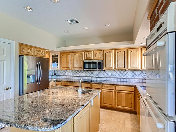 Pristine, immaculate home on fabulous mountain view lot. Backyard overlooks pastoral mountain setting by day - city lights by night. Granite counter tops, deep stainless sinks and oversized kitchen island with utility sink, double ovens, WI pantry, tumbled stone backsplash.. Main suite w soaking tub, 2 vanity areas, WI closet + another. Extras include citrus trees, artificial turf, great pool w slide. Exterior gas stub for outdoor cooking around cozy gas firepit. Located in A+ Mesa schools, convenient to 202/Red Mountain. Sale contingent upon seller finding a suitable alternate property with signed contract for said home.