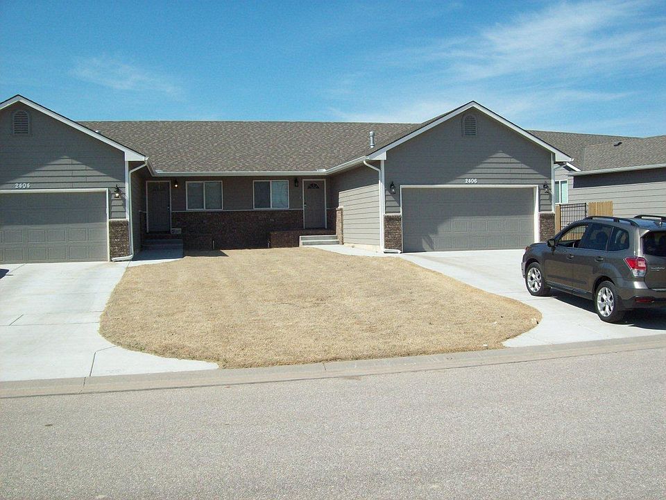 Semi-rural, Near Kechi, (K-254 and N. Rock). Beautiful 4 bedroom, 3 bath townhome with 2-car attached garage. Mid-level walkout to patio and back yard. Open main floor, vaulted ceiling, hardwood flooring with granite counters. Smooth-top range, fridge with ice & water, built-in micro and dishwasher. Layout: master bedroom (w/full bath and walk-in closet), a second bedroom, main bath and laundry room are on the main floor (Tenants provide washers and dryers). Another 2 bedrooms and full bath are in the view-out basement with large family room. Plenty of storage, fenced back yard with a pond view. Pets considered case-by-case. For a tour, please submit your Zillow application, which provides credit (minimum score 620), background check, proof-of-income, and any pet info. Your application will be good for 30 days of use on any Zillow listing - a time-saving tool for active shoppers. Thanks! Tenant pays all utilities. Owner provides mowing. Pets considered case-by-case. No Pit Bulls (or Pit mixes).