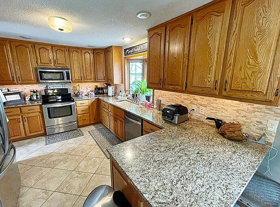 Location-Location-Location! Beautiful 4 BR 2 1/2 bath, brick & stucco 4 level-split w/quality upgrades close to the stadium, schools & shopping! Double french doors off entry to open living room, gorgeous raised panel oak kitchen w/granite counters, stone back splash, stainless steel appliances (includes french door refrigerator), lazy susans, vinyl tile floor, breakfast bar open to dining area w/sliding glass doors to deck & fenced yard w/play house, play set & shed. Central air, 2 car attached garage, Fletcher cabinets in bath, radon mitigation system & sump pump w/battery back up. 2019: Finished basement & installed Midwest Basement System w/guarantee, 2018 roof. Don't wait on this one! Call Jane Berg w/ Egemo Realty at 515-955-7443 or email Jane@JaneBerg.com for a private showing.