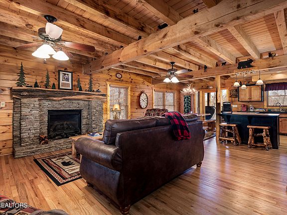 With a Country setting and Mountain Charm this cabin will be your favorite place to stay in the Smokies. This cabin has been a much loved vacation home and STR. It is close to all the attractions the smokies have to offer. this cabin has an open concept in the living room, kitchen and dining. It has hard wood floors throughout; 3 Bedrooms/ 3&1/2 Bathrooms/ 2 fully screened in porches on the back. Perfect for the family to relax after spending the day enjoying the Smokies. Cabin is being sold furnished and as is. It is extremely clean and well taken care of.