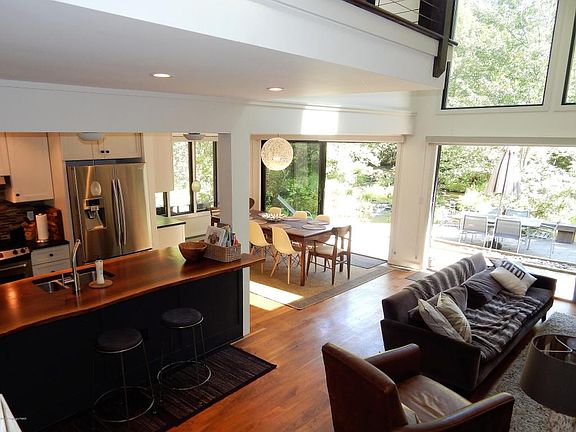 STREAMFRONT setting with a beautifully UPDATED home = you'll want to see this one! At 2228 Hillcrest Drive you can listen to the sounds of the stream in this awesome contemporary home. Open concept living area with room for all offering three bedrooms, two full baths and a family room with sliding doors for additional private sleeping or your special private space. First floor master suite with private deck to enjoy the stream views and sounds. Large deck with firepit to enjoy the great outdoor space. You can trout fish right from your back deck! LIGHT and BRIGHT and tastefully furnished....take a look and you'll agree there is nothing quite like this home!