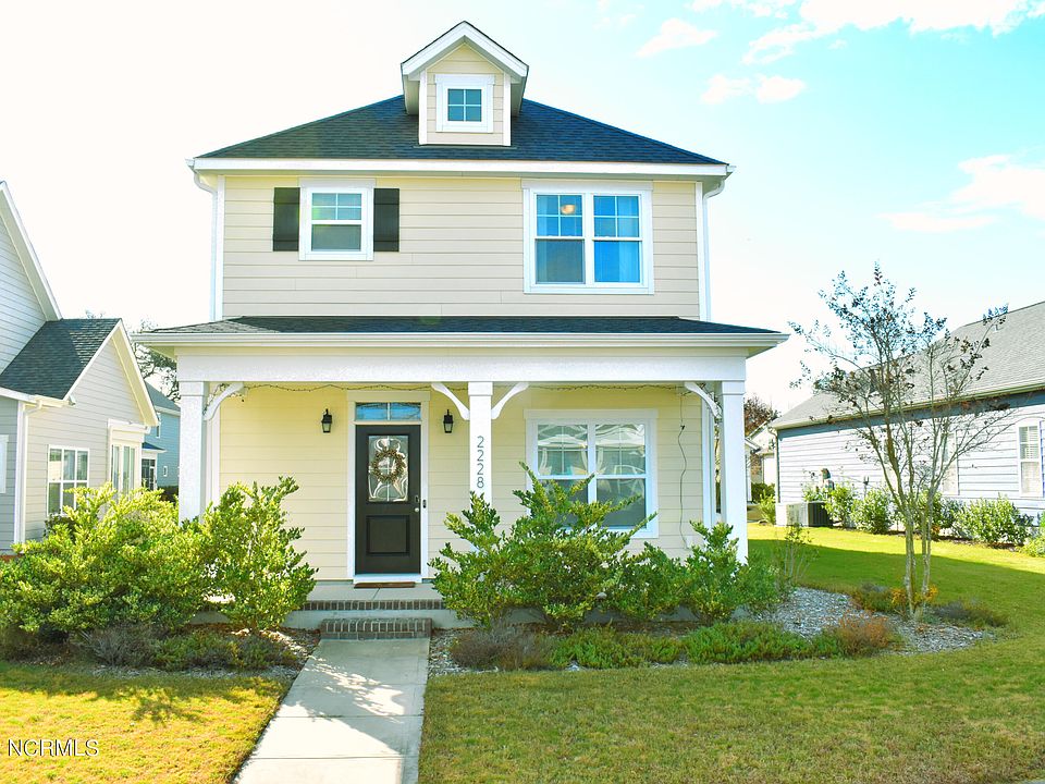 Look no further than this beautifully constructed Bill Clark Home to make your dreams of coastal living a reality! This charming ''Hadley Cottage'' offers a welcoming front porch and an open-concept living room, dining room, and kitchen with 9' ceilings. The kitchen boasts granite counters, a center island, natural gas range, a large pantry and stainless steel appliances. A generous mud room and separate laundry room offer abundant storage potential between the kitchen and the garage. Off the dining room is a spacious, covered patio for enjoyment year round. The primary bedroom and two additional bedrooms are located upstairs. The primary bedroom features a walk-in closet and ensuite bathroom with dual sink vanity and walk-in shower. Lush landscaping outside is easily maintained with an irrigation system on an automated timer.