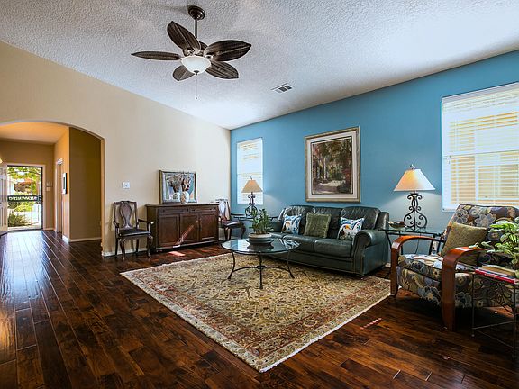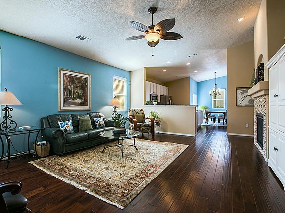 This home IS as nice an the pics. Ready for showings on Saturday. Spacious single story home with open design, a stunning kitchen with granite countertops, tile back-splash, huge custom island, abundance of cabinets and gorgeous hardware. Large living room with a gas fireplace. The owner's suite is roomy, with 12' vaulted ceilings. Wait until you see the closet! Huge! Home provides 3 bedrooms plus a study. Garage is 2+ car with lots of room for storage. Fabulous paver patio in backyard with mature tree and covered patio. One of Centex Homes most popular plans. Cabezon is a master planned community with parks, pool etc. And close to shopping, dining, movies etc.
