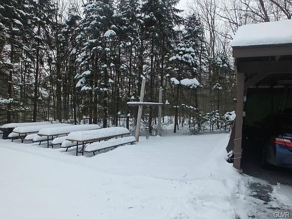 Cozy, solid log cabin on 2+ acre wooded lot. Enjoy the serene country setting but just minutes from schools and shopping. Close to state game lands, nature trails, and Lehigh River.Large floor to ceiling stone fireplace in living room. Partially covered deck overlooking woods w/picnic area. 2 car garage (no doors) and 20 x 16 shed.
