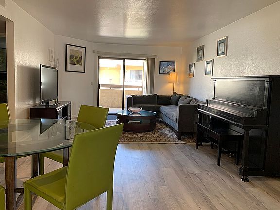 Beautiful 2 bedroom, 2 bath upper level furnished condo near the desirable location of Papago Park. *Water is included in rent* Brand new wood-like vinyl flooring was installed throughout the condo. The kitchen boasts granite counter tops and stainless steel appliances with a breakfast bar. The condo is furnished with a sectional sofa, coffee table, 55'' HDTV, an upright piano in the living room, and full dining sets. Master bedroom has a king bed and the second bedroom has a futon sofa bed with an additional TV. Full size washer and dryer included as well. The Papago Ridge Condominiums has a private pool, spa, and fitness center. Easy access to highways, ASU, and airport. Absolutely MOVE-IN READY.