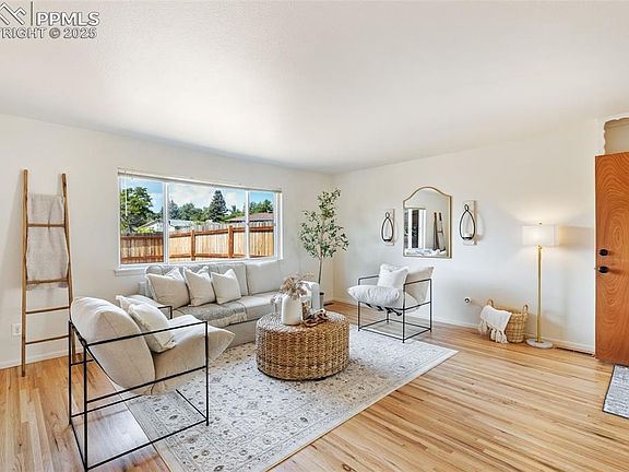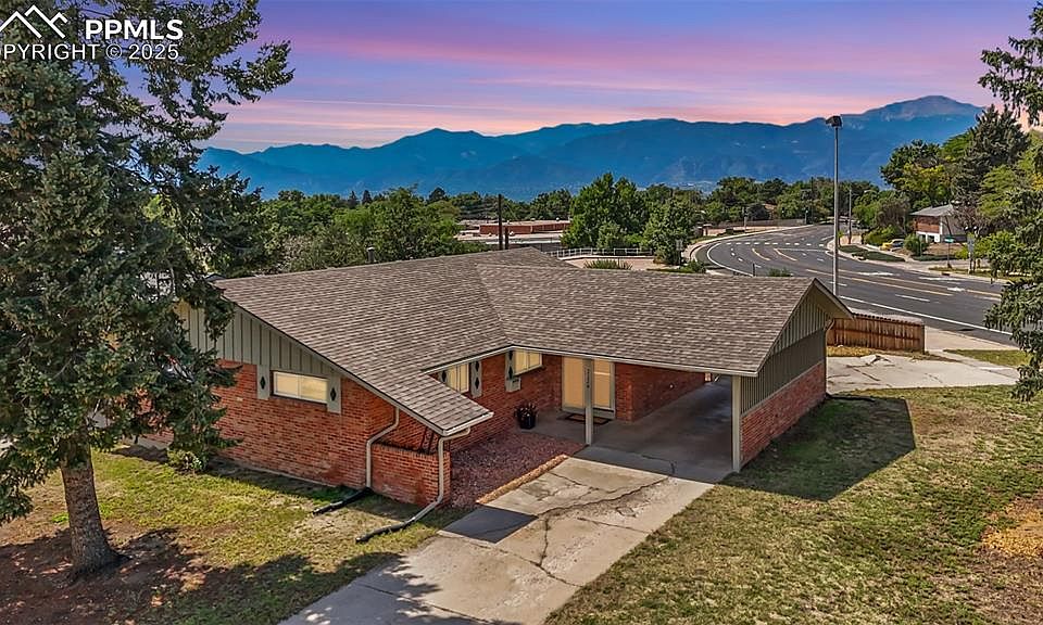 You will love this Adorable Mid-Century Brick Ranch Home in the heart of Palmer Park, perfectly situated on a desirable corner lot with a fenced backyard and stunning, unobstructed views of Pikes Peak and the entire the Front Range! Beautifully refinished hardwood floors throughout, complemented by fresh interior paint and new flooring in the kitchen and bathrooms! The kitchen features granite countertops, while the bathrooms showcase resurfaced tile for a clean, updated look! Major improvements include: New ROOF (2025), New WATER HEATER (2025), newer FURNACE (2018), ELECTRICAL UPGRADE (2018) and the comfort of CENTRAL AIR! Enjoy relaxing under the covered patio with the breath-taking view of Rocky Mountains from Cheyenne Mountain to Pikes Peak or take advantage of the convenient drive-through carport with semi-circle driveaway providing access from both Chelton and Maizeland! This charming home combines modern updates with timeless character in a fantastic location! Conveniently located in the center of the "Olympic City" with easy access (within walking distance) to Palmer Park, amazing hiking trails and beautiful mountain views, schools (like right in your backyard), restaurants, shopping and more! Look no further, you've found the perfect one...WELCOME HOME!