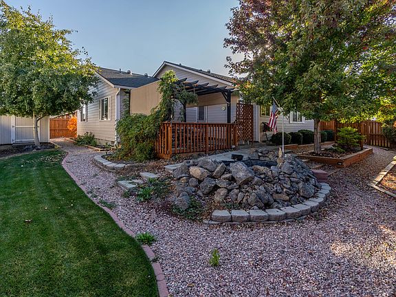 Adorable Single Level Home with Vaulted Ceilings in Great Room and Master, Tiled Surround Gas Fireplace, Kitchen has Gas Range and Large Pantry, Island and all Appliances included, Blinds on all Windows, Master Bedroom and Guest Bedroom has Ceiling Fans, Third Bedroom is smaller, perfect for an Office or Nursery, Oversized Garage with Built in Cabinets, Back Yard is Amazing with Mature Landscaping, Water Feature, Gazebo, Rock Pathways, Shed for storage and Fully Fenced.