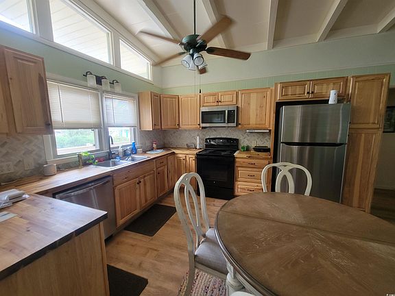 - Features: Beamed Ceilings, Ceiling Fan(s), Vaulted Ceiling(s)
