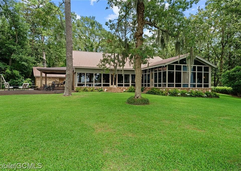 Welcome to Riverview, a gated 2.5 acre waterfront estate offering the most magnificent views and sunsets you could possibly ask for with 200 ft on Dog River. This wide part of the river is deep enough to accommodate large boats. Exquisite main house with 3 bedrooms/2 baths and guest cottage with 1 bedroom/1 bath. Gorgeous view of the river from most rooms in the main house as well as the guest cottage. Beautiful heart pine floors, reclaimed wood paneling, soaring ceilings and a wood burning stone fireplace in the living room, floor to ceiling windows in the owner's suite, dining room, and sunroom, double ovens in the kitchen, concrete sea wall, durable cedar siding, workshop, garage space for 2 vehicles, fruit trees, and metal roof. Don't miss the spiral staircase in the living room leading to a loft with stunning view of the river. This waterfront home is truly a rare find in Mobile County and the perfect retreat located just 10 minutes from downtown Mobile. All updates per the seller. Listing company makes no representation as to accuracy of square footage; buyer to verify.