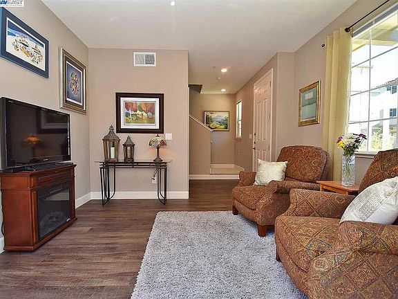 $50,000 PRICE REDUCTION!! Like new home, built in 2018 with gorgeous, open floor plan and over $50,000 in upgrades. Plenty of natural light flows through the entire unit. Huge kitchen with granite counters, stainless appliances, large center island, gas stove and walk in pantry. Corner home in a great location overlooking greenbelt and picnic area. Additional features include high end laminate flooring, recessed lighting, dual zone heating and air conditioning, balcony, side yard, 2 car attached garage and solar. 10 year warranty is transferable to new buyers. Most furniture can stay with the house. Great location close to freeway access, San Mateo bridge, BART, downtown Hayward, Cal State East Bay.