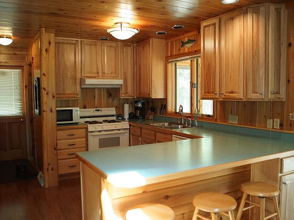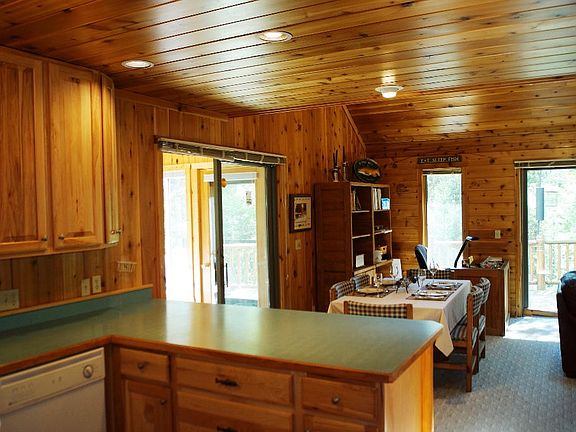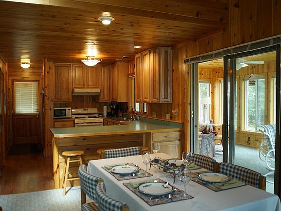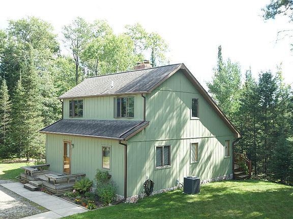 This charming cottage is just about perfect. Finished in select Idaho Red Cedar with a cultured stone fireplace, towering ceilings and a larger river side deck, the home has a well designed floor plan with a main floor master bedroom, large sun room, open kitchen/dining/living area, full basement, and two spacious guest rooms. The large garage and workshop also has full guest quarters above with a bedroom, full bath and large living/rec area. The home is situated on 4.5 heavily wooded acres with over 400' on The Au Sable River's Holy Water for truly world class dry fly fishing right out front