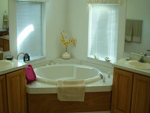 Don't miss out on this wonderful floor plan! Living room has cathedral ceilings & soft natural light. Entry way views the great room just off the kitchen. Galley kitchen with the works, even a built in secretary! Laundry room has own door to back yard, perfect place for deck expansion. Master Bath has separate his & hers sinks (Love it!) with a large garden tub between.