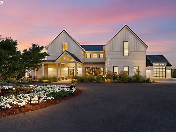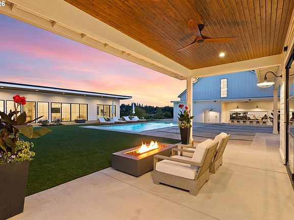 This custom-built gated estate in highly sought-after Stafford offers luxury, privacy, and panoramic views across 10+ level acres. The approx. 5400 SF main residence features main-level living with 5 bedrooms, 3 full and 2 half baths. A newly completed 1,800 SF pool/guest house includes a full bedroom suite, kitchenette, and state-of-the-art fitness center. The nearly 3,000 SF dream shop with RV parking/up to 12 vehicles offers soaring two-story ceilings and a full bathroom. Resort-style amenities include pool, spa, outdoor kitchen, turf lawns, sleek patios, and a poolside fireplace and bar. Inside, enjoy premium finishes: a vaulted wood-clad great room, metal floating staircase, folding glass walls for seamless indoor-outdoor living, a showcase wine room, and generous bonus spaces. The main-level primary suite offers a private patio, elegant dressing room, and spa-style bath with heated floors. Upstairs includes 4 bedrooms, a playroom, and an office. The acreage is ideal for equestrian use, vineyards, or expansion. Located in a top-rated West Linn/Wilsonville school district with the option to attend the new Riverside High School and its prestigious International Baccalaureate (IB) program. This property also benefits from a valuable tax farm deferral, offering significant long-term savings — a rare combination of luxury, location, and financial advantage just south of the Portland Metro area and close to nearby famed wine country. Easy access to freeway as well as Portland International Airport. Shown by appointment to qualified buyers.