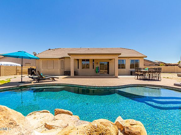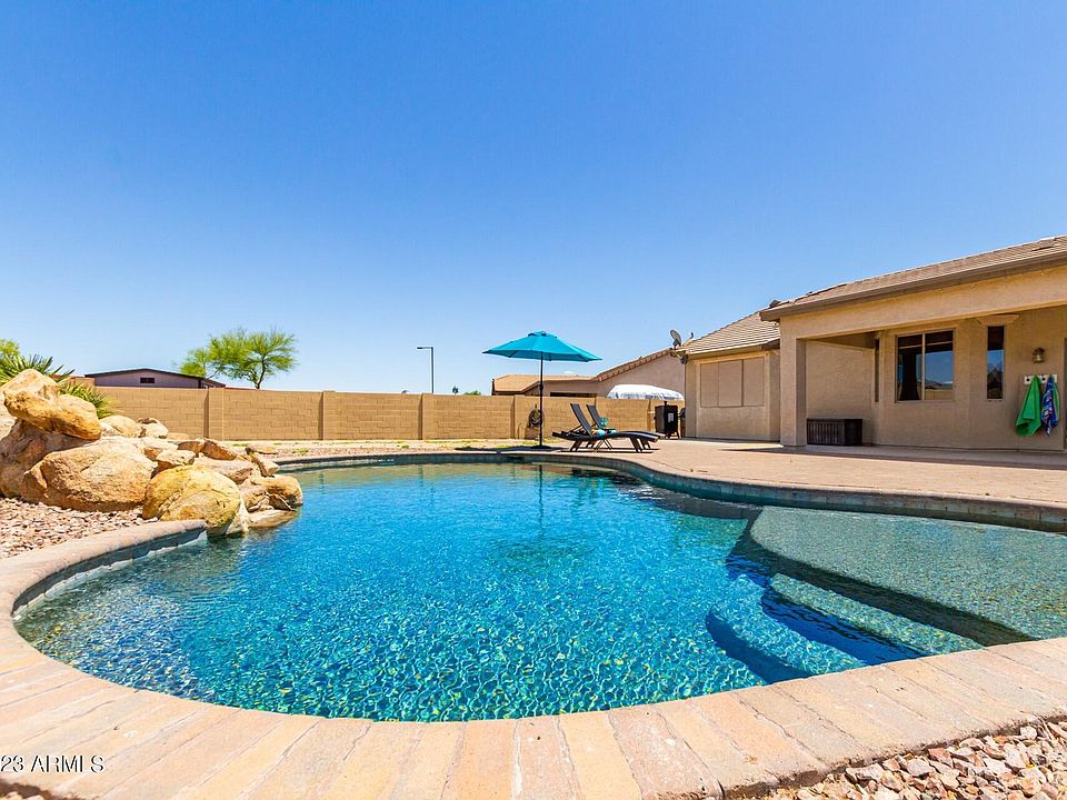 This 4 bed/2.5 bath POOL home on a massive 21,000 sqft lot in Buckeye is back on the market! You'll be amazed by the breathtaking mountain views in the private backyard. The owners have recently invested over $30,000 in upgrades, including a pool heater/chiller, new pool vac, new AC units, & fresh interior paint. This cost-efficient smart home (with Solar) is conveniently located near schools, golf courses, hiking trails, freeways, restaurants, & shopping. You won't fully appreciate this home until you see it for yourself! ALL AGENTS: please see private remarks.