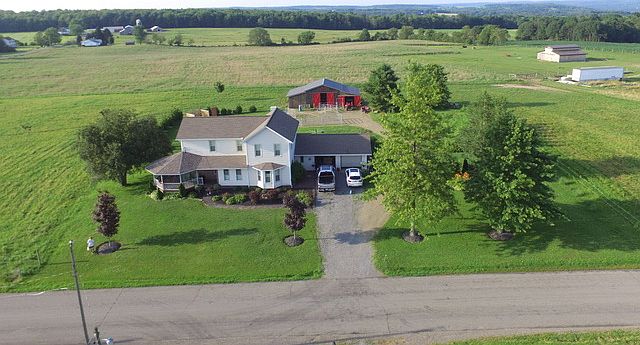 2200 sq ft home with unfinished basement. 10 acres with 4 acres fenced for livestock,and underground dog fence. Free Natural gas to the home. Furnace,stove,dryer,hot water all natural gas ran. New in 2019 kitchen,both baths, upstairs carpet,and gutters. New since 2011 windows, flooring, furnace, A/C, water softener, and hot water heater. 32x48 pole building with in floor heat and Benpak 2post lift and 60 gal air compressor. 48x24 barn with elec and water ran to. Stamped concrete back patio with firepit and spacious front porch gazebo. WONDERFUL views. Quiet country setting just 6 miles from Meadville and Cochranton!! 1 mile from Tamarck lake. 2018 Kubota commercial 60 in zero turn also comes with.