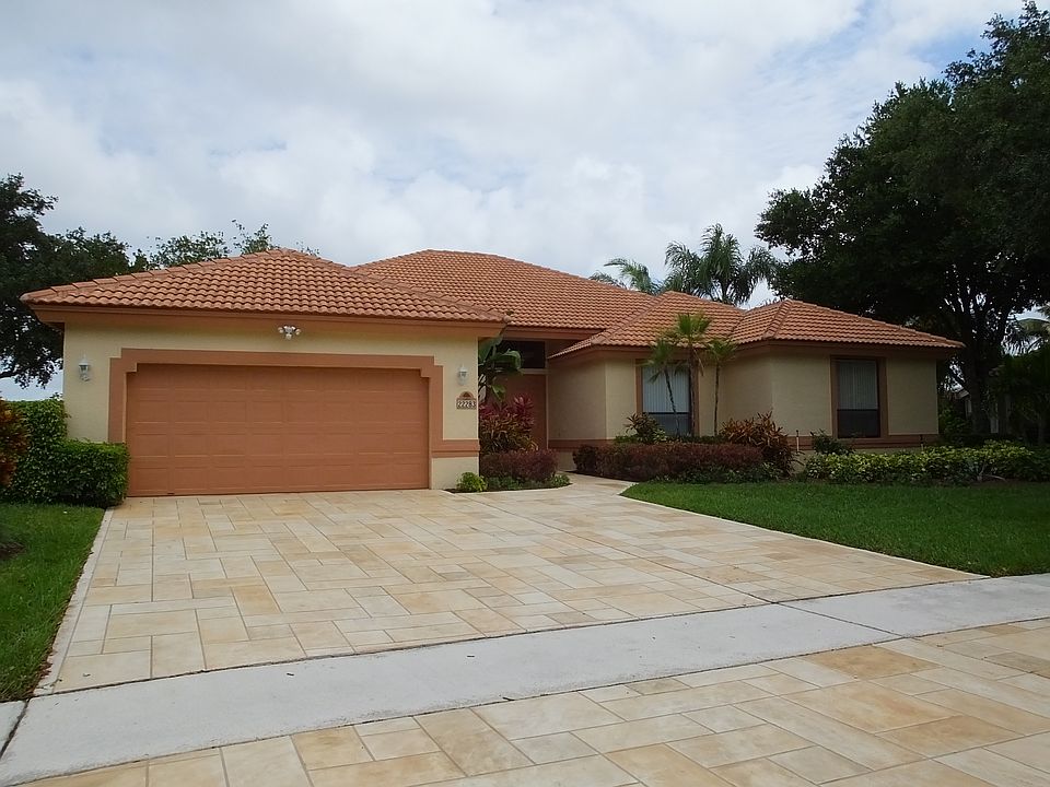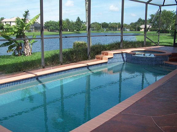 Beautiful Lexington Estates home on a quiet interior lot. Expansive lake views from most rooms. Interior of this home is immaculate, neutral, open and very bright with volume ceilings. Custom Italian floor tile that shines like glass. The kitchen boasts granite counters, stainless steel appliances, and cherry wood cabinets. Master bedroom is grand with sitting area and large walk-in closet. Master bath has granite counters and vessel sinks. Abundance of high hat lighting in main living area. Private heated pool and spa under a screened lanai overlooking the lake. This dramatic house will impress your fussiest buyer. Location! This house is located within 5 minutes of most major shopping, schools, hospital and restaurants. Low HOA fees & 24 hour manned guard gate.