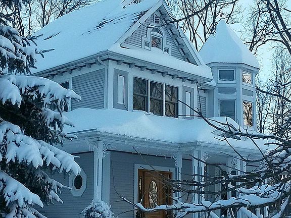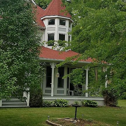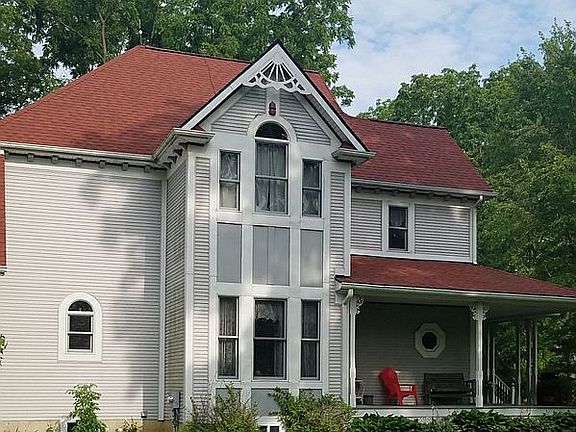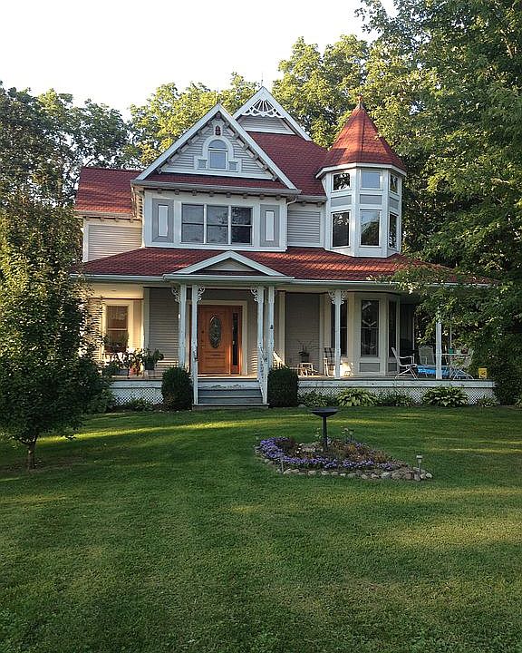 Custom Built Victorian on 10 partially wooded acres features 3 bedrooms and 3 baths, huge bonus room over the garage, 1st floor laundry, gas fireplace. a screened in back porch faces the woods and a large verandah wraps around the front of the house . A new roof was installed 3 years ago. Hardwood floors and custom wood features throughout this beautiful home. Dual custom oak bookcases in the reading loft. The bonus room or large 4th bedroom has a cedar lined closet. Three window seats with storage under two. Airing porch off third bedroom. Beveled glass doors to study or 5th bedroom. Brick patio.