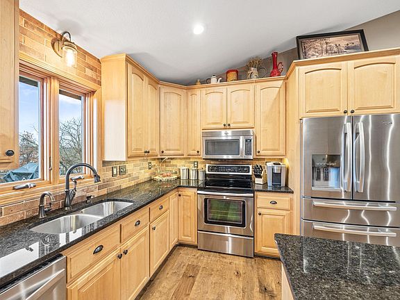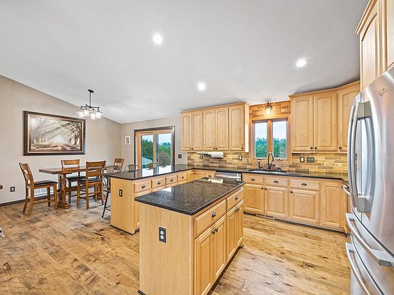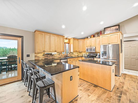 Stunning well-maintained 4 Bed, 3 Bath Rambler surrounded by mature trees nestled on 2.55 acres. Main level features vaulted open concept layout, large Kitchen w/ Island, beautiful Granite counters, all SS appliances, Full Bath, 3 of the Bedrooms including the Primary Suite which features Private remodeled ¾ Bath, walk in closet, walk out to the Deck. Lower level was finished in 2021 and features walk out, spacious Family and Amusement area, Gas Fireplace w/ stone surround, 4th Bedroom, ¾ bath, Office, and plenty of storage. Newer Patio doors, and Windows. New Retaining walls and no maintenance Deck Fall of 2022. Attached heated 3 car Garage w/ built in cabinet storage, and epoxy floor. Additional 40’x40’ Pole Shed complete w/ heated wood shop area.